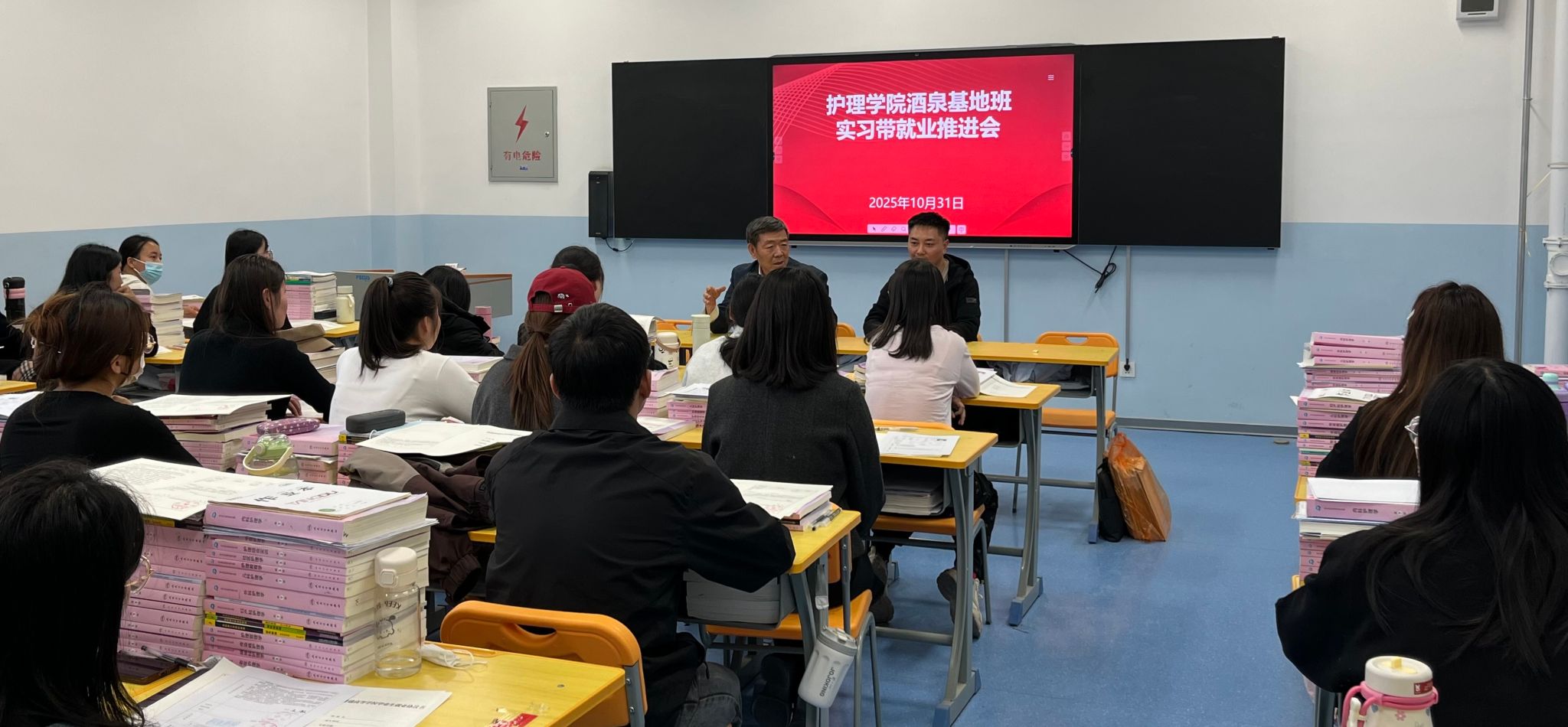 学院负责人一行,先后到嘉峪关市中医院、中核404医院、嘉峪关市第一人民医院、酒钢医院、上海市第一人民医院酒泉医院访企拓岗、检查实习工作、看望实习带就业的2026届毕业生,并围绕教学科研及毕业生就业招聘达成了合作意向。在酒泉职业技术大学,召开了护理专升本基地班实习带就业推进会,发放了毕业生求职签约资料、开展了毕业生档案核查、毕业论文督导,对即将开展的实习带就业工作进行了安排部署。