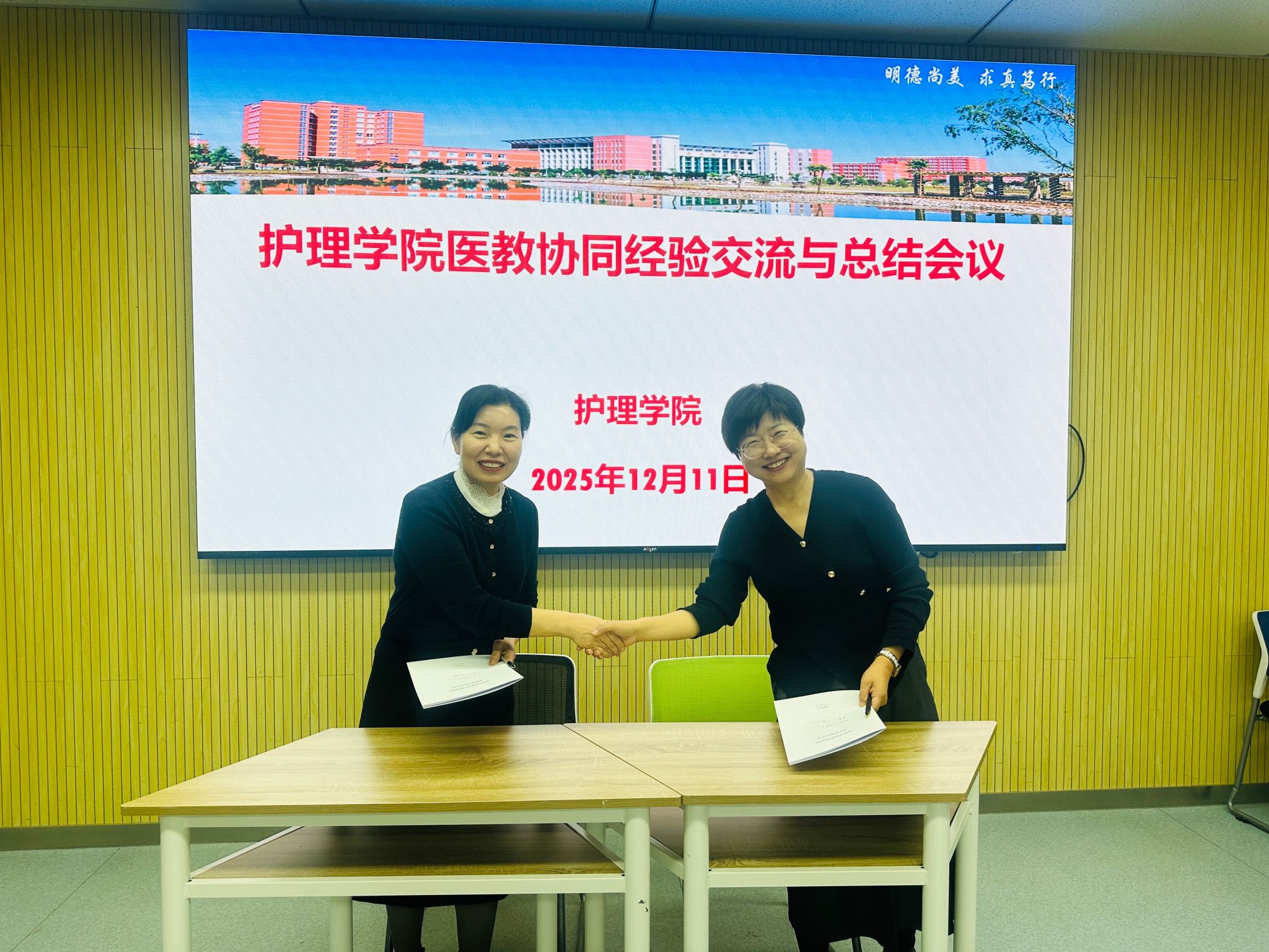 学业导师工作安排会公布了2025级本科生学业指导双向选择分配结果,系统解读了基于四年贯通制、早临床实践新修订的《护理学院本科生学业导师管理办法》,明确导师职责、考核激励等具体举措。医教协同经验交流会上,由学院、医院相关负责人分别总结了近一年两院在师资共建、教育教学、科研协同等方面取得的实质成效和存在问题。双方一致表示将继续深化协同机制,整合优质资源,共同促进护理专业人才质量提升。会上还举行了兼职学业导师(临床教师)聘任证书颁发及工作协议签署仪式,进一步规范了指导职责。