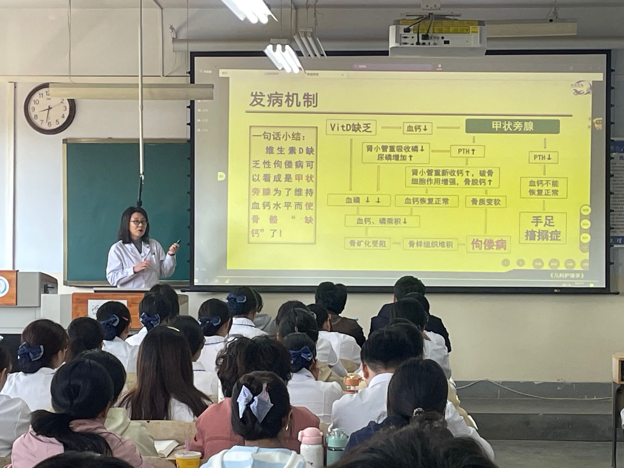 何昱苇老师围绕主讲课程《儿科护理学》中“营养障碍疾病患儿的护理”,精心设计教学环节,展开示范授课。授课中,通过思维导图复习上节课重点内容,引导学生自主回顾知识脉络,结合视频,自然切入本节核心内容。重点讲解营养障碍疾病的临床表现、护理评估、护理诊断及护理措施,同时注重引导学生主动思考,通过课堂练习、讨论等形式,让学生在互动中巩固知识、提升能力。通过“理论讲解—课堂随练—即时反馈”的闭环教学模式,逐步深化学生对重难点内容的理解。观摩教师纷纷表示,此次示范教学亮点突出、实用性强,对提升课堂教学质量、增强教学针对性具有重要启发。